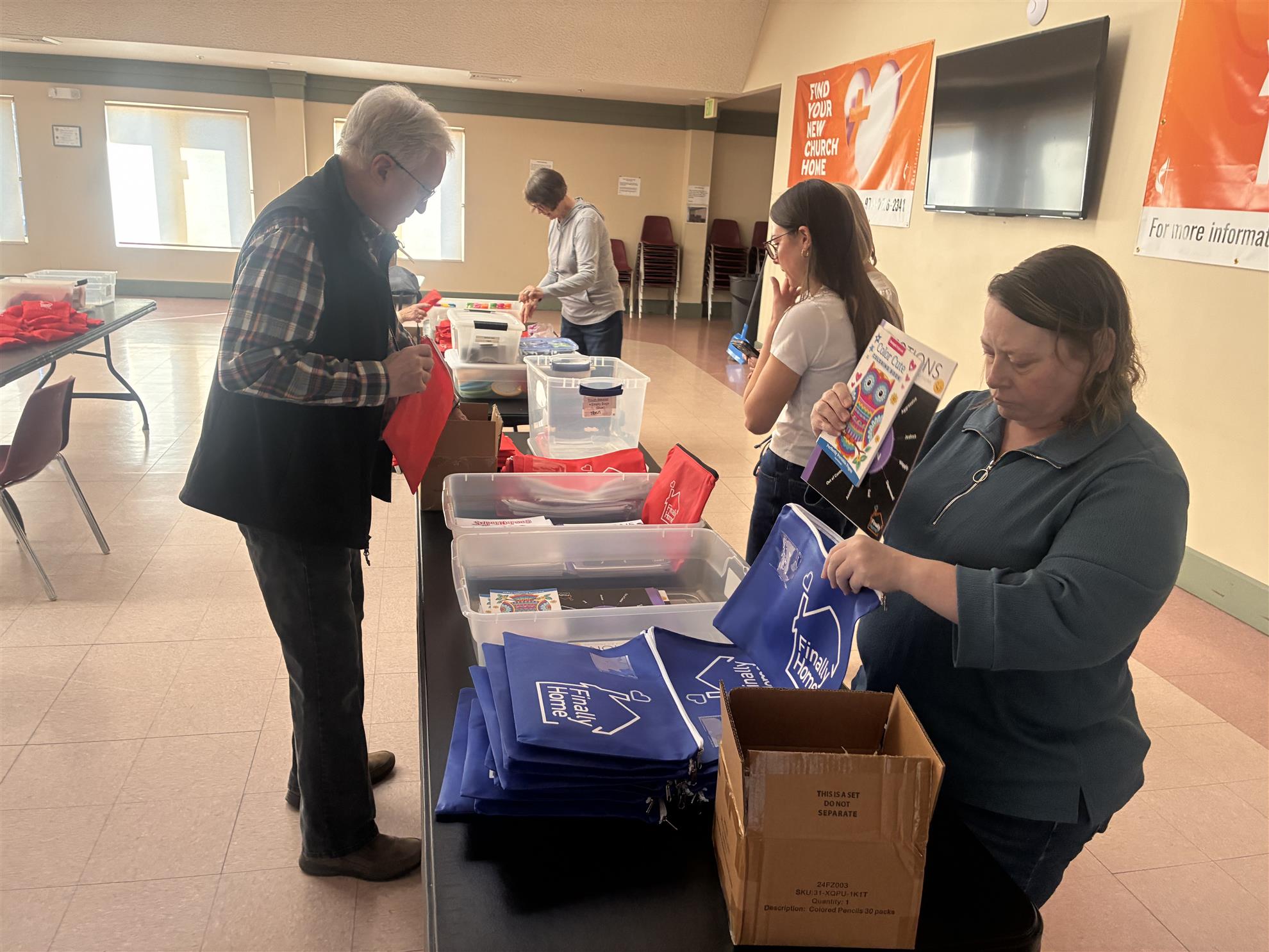 Several members of the Breakfast Club spent Saturday morning putting together Toolkits for Big Emotions for the Finally Home organization.
